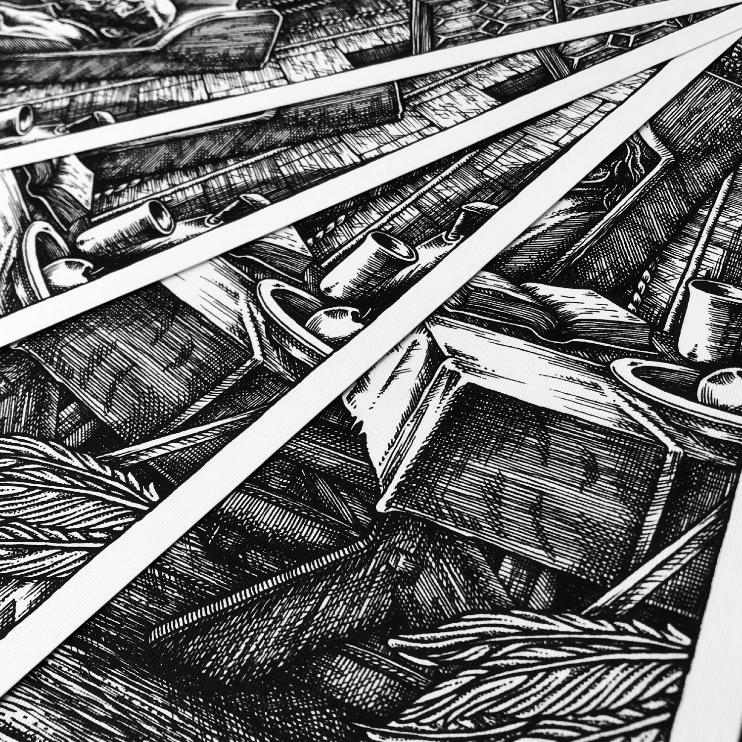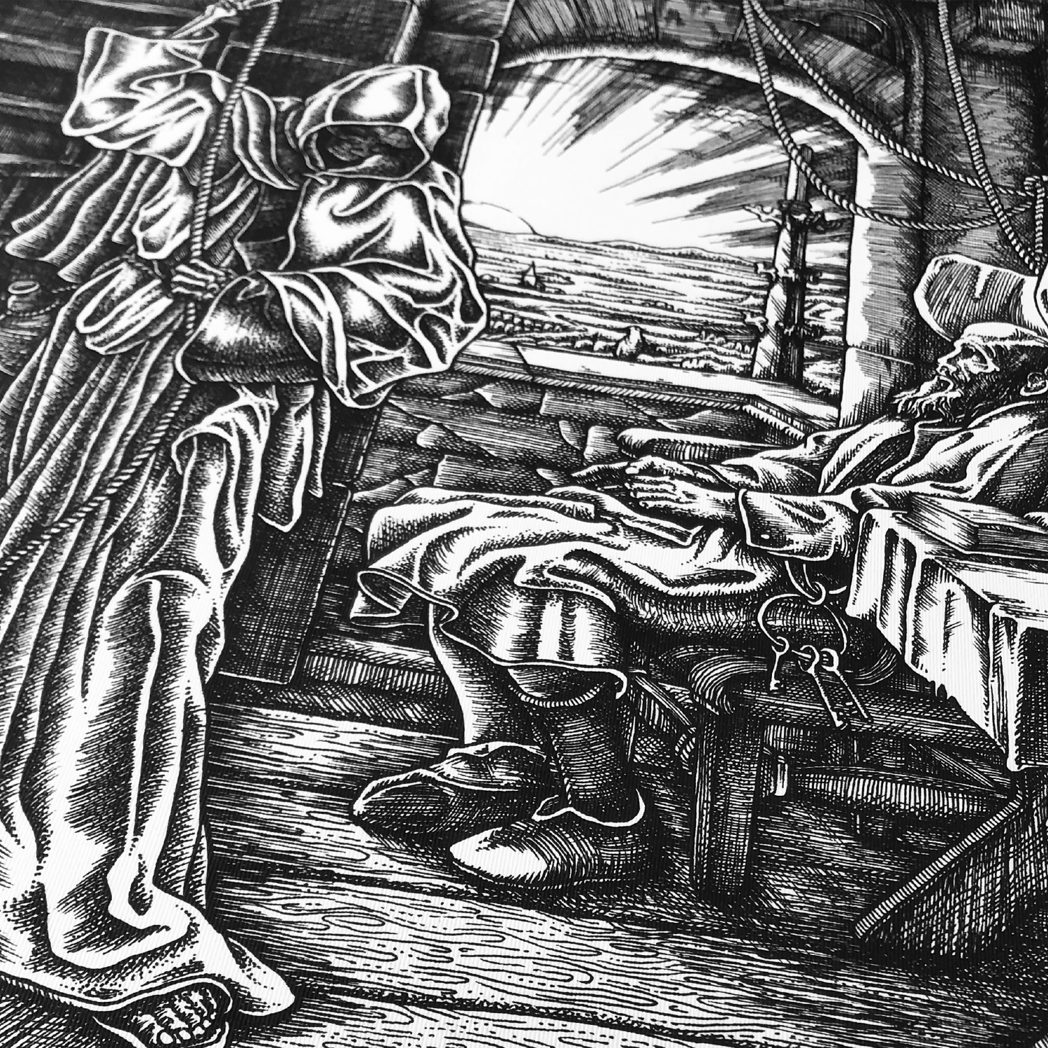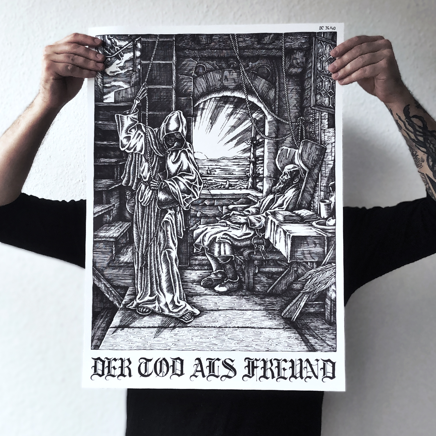 42 x 60 cm print based on Alfred Rethel’s ‘Der Tod als Freund’ wood engraving. Printed on 300 gsm watercolour stock. Limited run of 40, signed and numbered