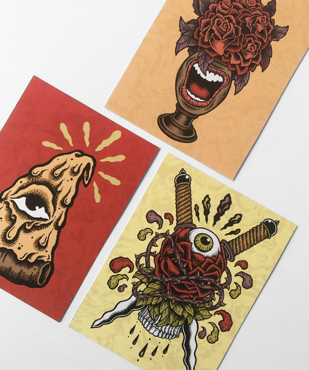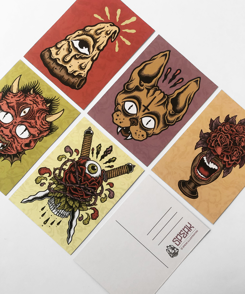 Set of 5 postcards on 300g recycled stock. Also come with free stickers